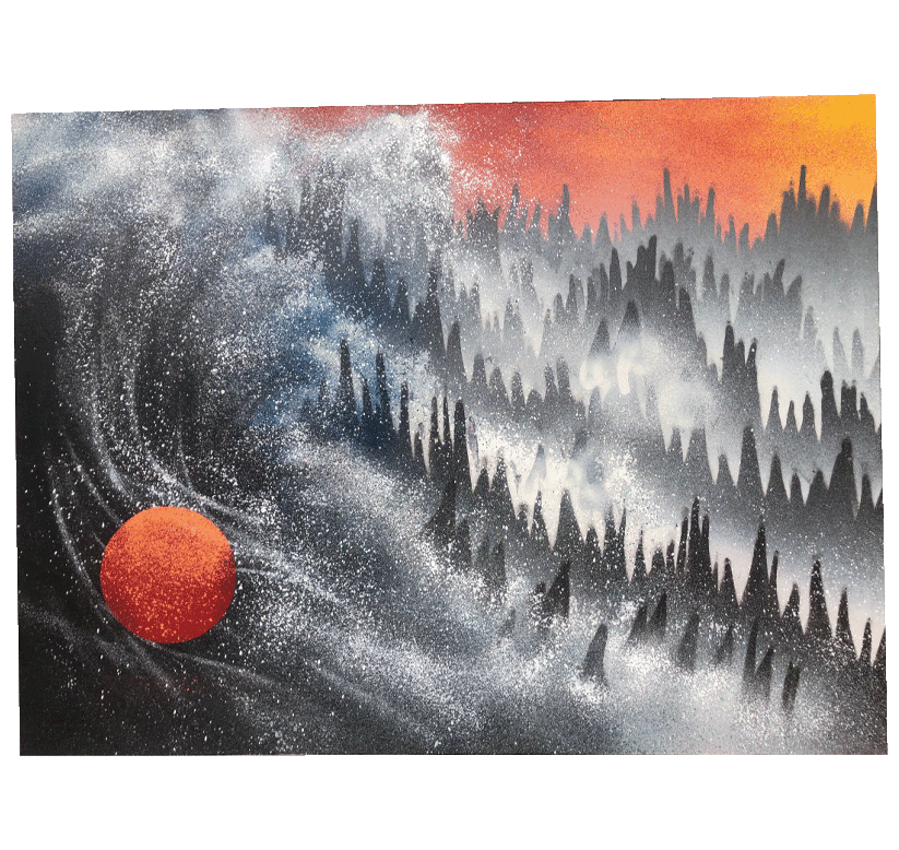 16x20” Spray paint, Ink
