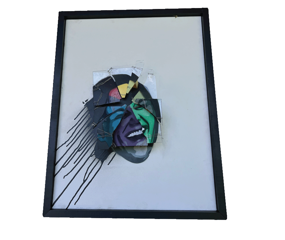 $3,200 28x22x4” Spray Paint, Glass, Wood