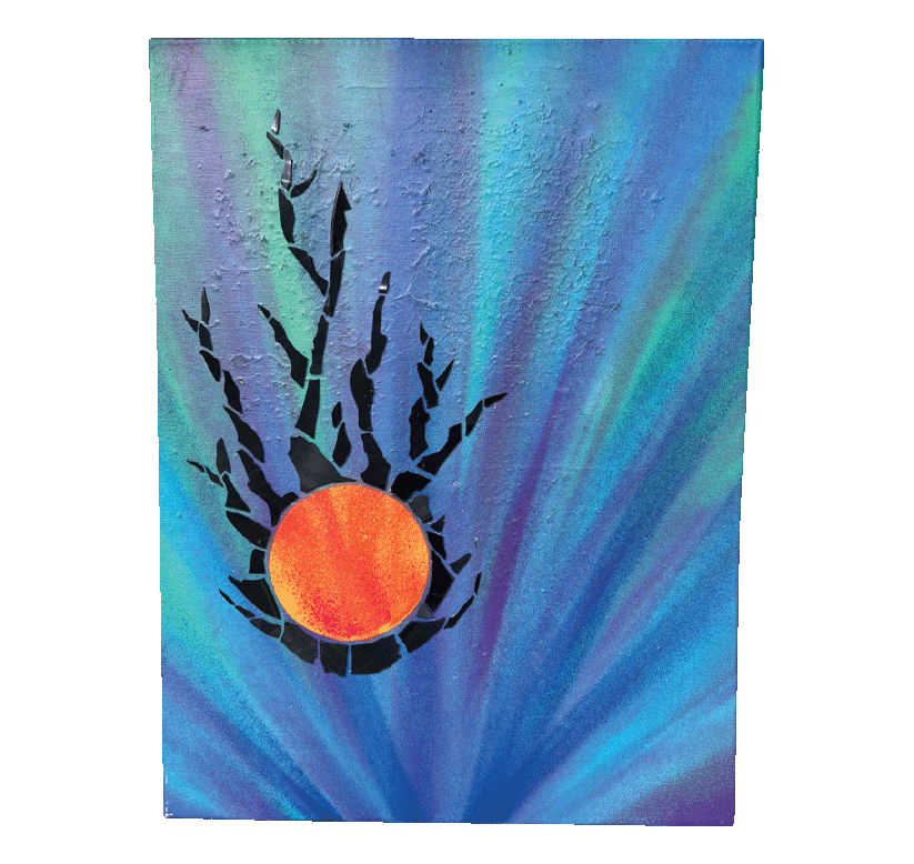 $1,500 18x24" Spray paint, glass, wire