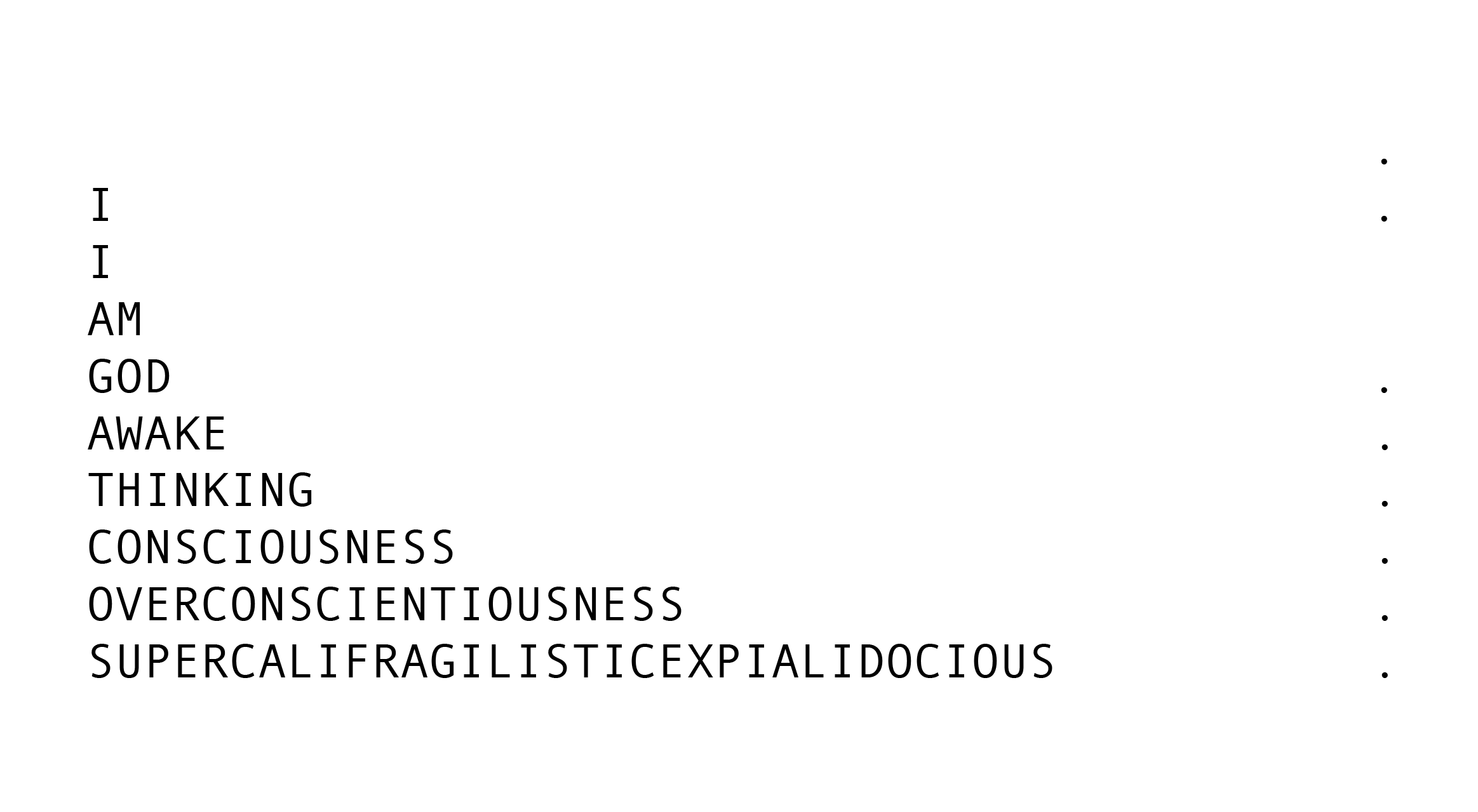 This is a poem which was written to the Fibonacci sequence during a creationist phase. It is a sort of meta-musing about how creation may have gone. As the poem took form, the self satisfied creator is assured of its omnipotence. But with self consciousness comes pressure to perform. A perfectionism that is dissonance between creator and creation. Finally, resolution. The poem wrote itself.